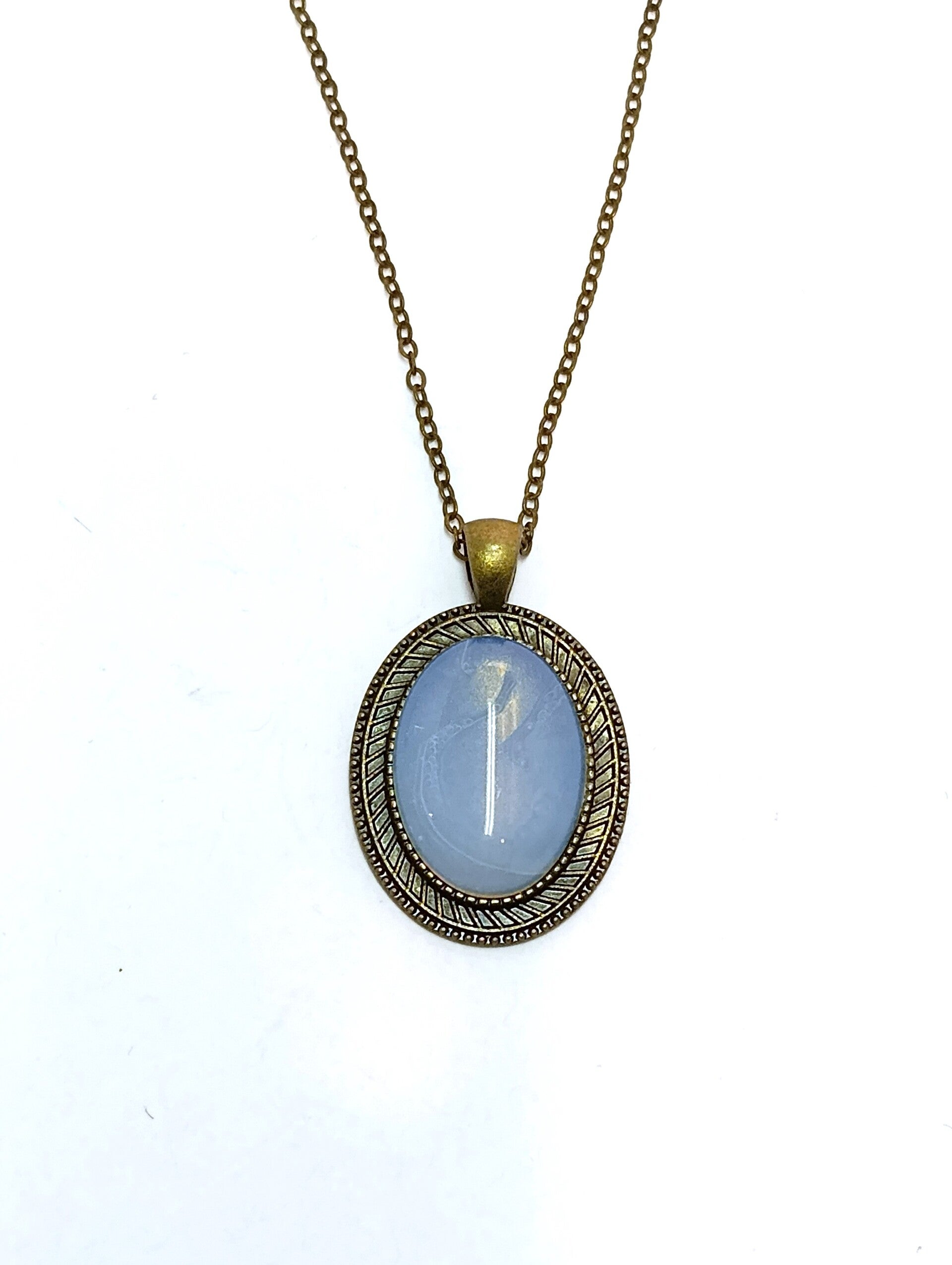 exclusieve selfmade grote (3-5 cm.) hangers in "fake" zilver, goud of brons, met natuurlijk edelsteen, keus uit ca. 35 items.